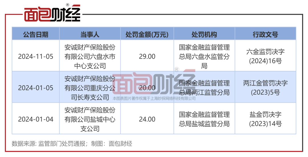 面包财经凭据监管部门通报统计,2024年以来,安诚财产保障股份有限公司过火分支机构已收到监管部门开出的多张罚单。